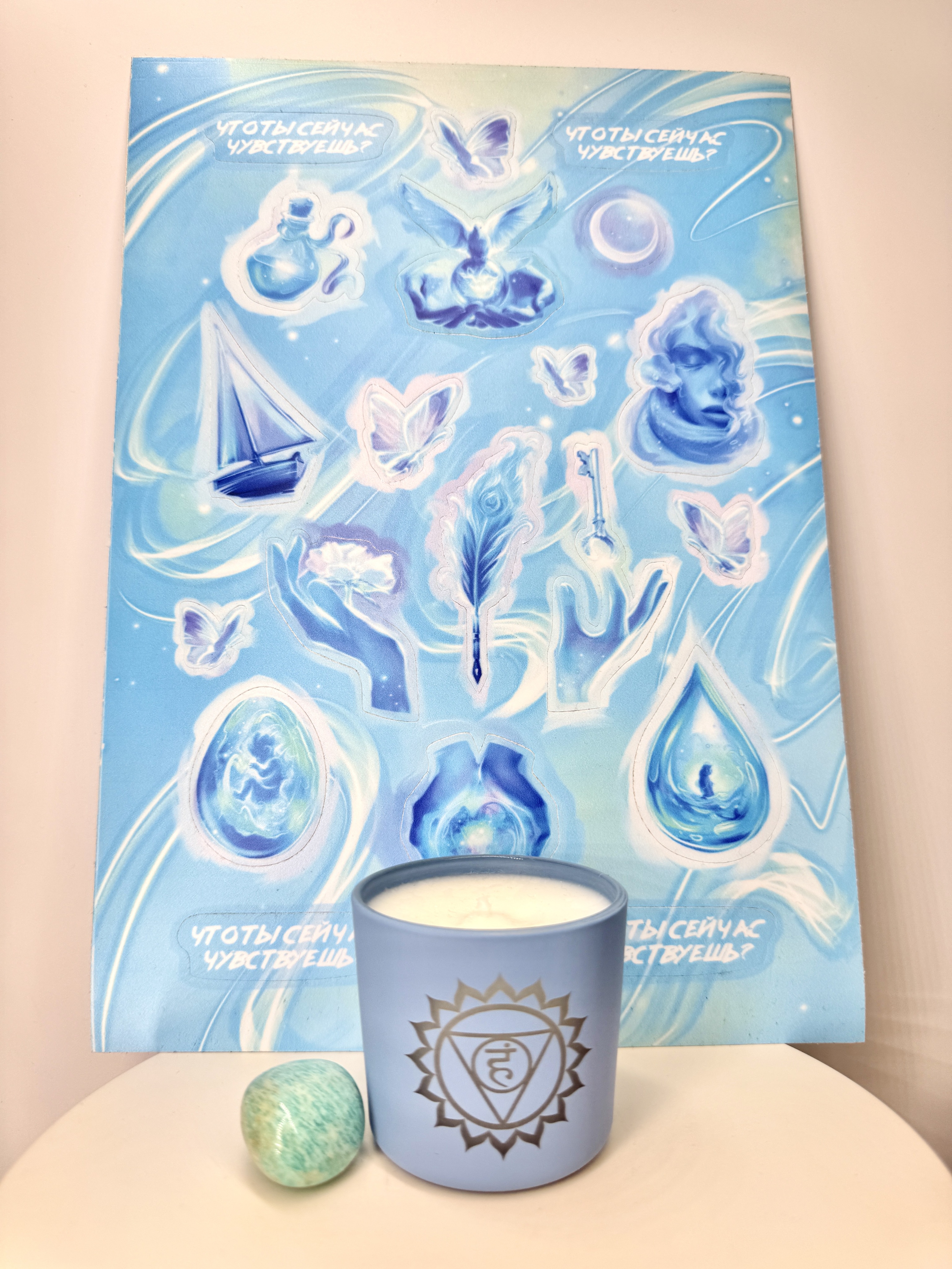 3. Аромасвеча Чакровая - Вишудха - пространство голоса истины, помогает переводить чувства в слова. Создает атмосферу, в которой становится проще говорить о себе и слышать себя, формулировать желания, чувствовать и понимать.