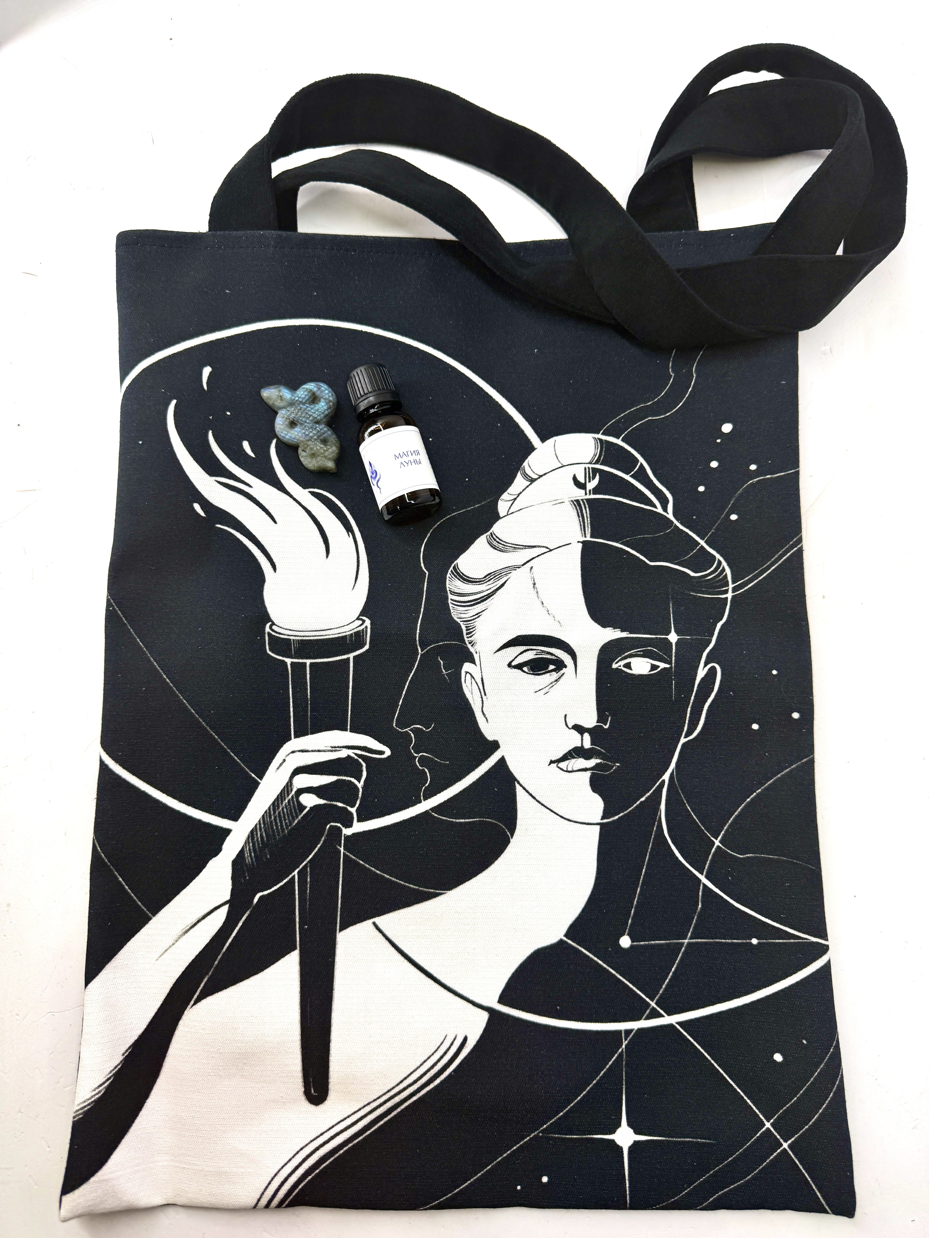 1. Шоппер "Богиня Геката" - энергия зрелого различения: где есть правда, а где лишь иллюзия, где ваш путь, а где чужая тропа. Знак вашей позиции - осознанный выбор, который созревает внутри вас.
